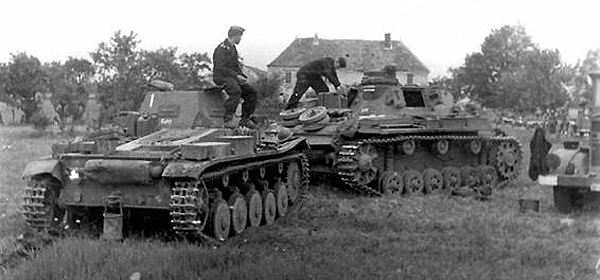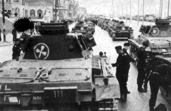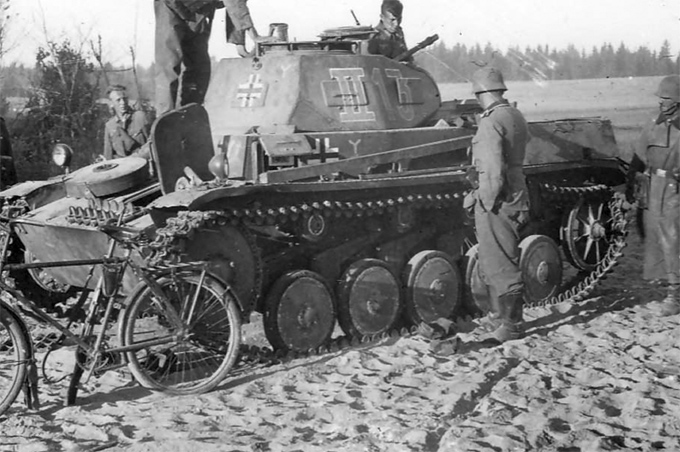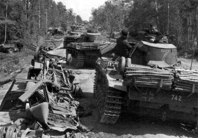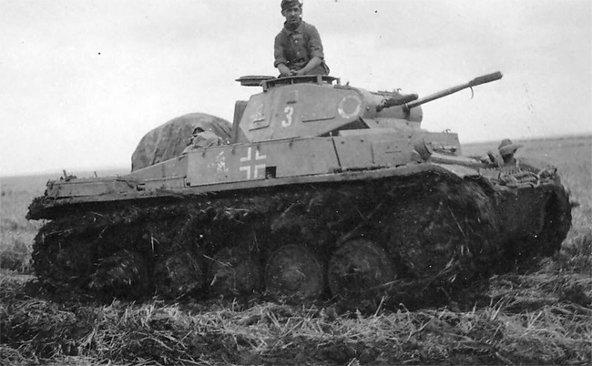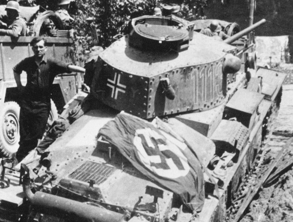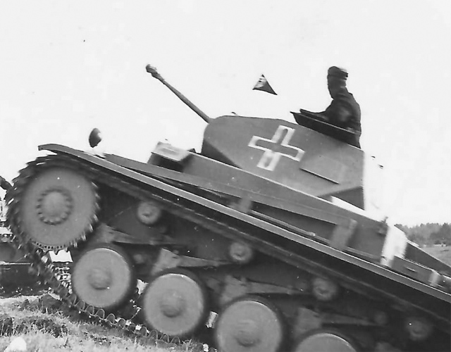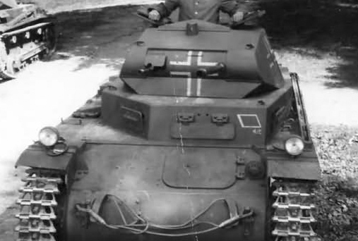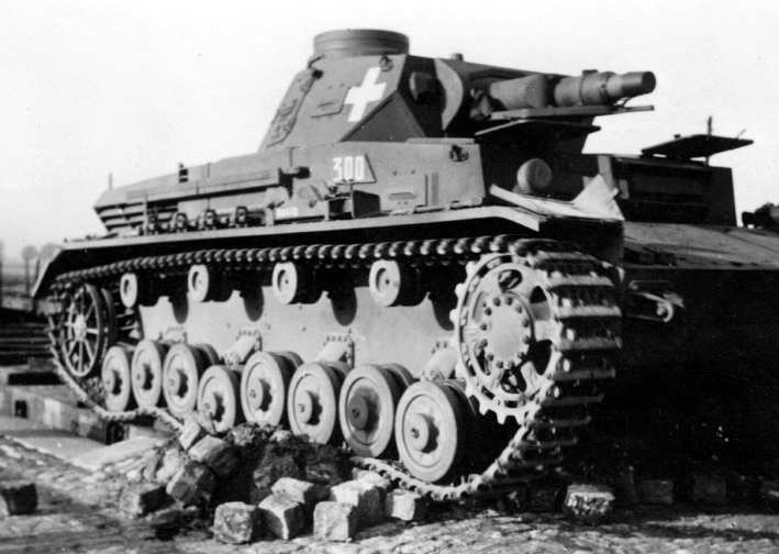 pro útok na Polsko v září 1939 byly německé tanky opatřeny velkými trámovými kříži v bílé barvě, a to i na čelním pancíři, což se ukázalo jako ne úplně šťastné řešení, zdroj: Flickr.com se souhlasem publikujícího uživatele, upraveno