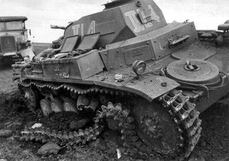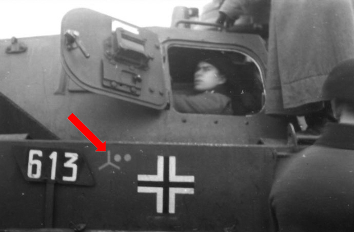 Jedno takové velmi netypické písmeno ve věžovém čísle však vysvětlit umíme. Konkrétně je to písmeno F u tanku na snímku ZDE. V tomto případě se jednalo o tank ze štábu plamenometného praporu Panzer Abteilung 100 (Fl). Písmeno F ve věžovém čísle odkazuje právě na slovo Flamm nebo Flammenwerfer, tedy plamen, resp. plamenometný. Toto zařazení potvrzuje i písmeno G uvedené na blatníku tanku. Panzer Abteilung 100 (Fl) byl totiž ve druhé polovině roku 1941 součástí 47. tankového sboru (XXXXVII. Panzerkorps), který spadal pod 2. tankovou skupinu generála Guderiana, nazývanou též Panzergruppe Guderian (a právě odtud to G).
