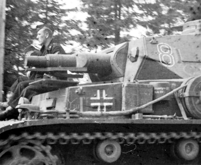 tank Panzer IV velitele 8. roty (proto číslo 800) neurčeného tankového praporu, pluku a divize, číslo je vyvedeno ještě postaru na odnímatelné destičce, zdroj: Flickr.com se souhlasem publikujícího uživatele, upraveno