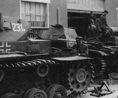 A aby ten seznam výjimek a specialit nebyl moc krátký, zmíníme se ještě o tankových praporech, které nebyly součástí pluků, ale spadaly přímo pod velení tankové divize. Krásnou ukázku nám v tomto poskytne 6. tanková divize. Tato divize disponovala standardním tankovým plukem (Panzer Regiment 11), který měl dva vlastní integrální tankové prapory. Mimo to ale měla divize od začátku své existence až do poloviny roku 1942 ještě další samostatný tankový prapor Panzer Abteilung 65, který nespadal pod velení pluku Panzer Regiment 11, nýbrž přímo pod velení divize. Podobná situace existovala dočasně (v roce 1940) také u 7. a 8. tankové divize. Pro číslování tanků ze štábu takového samostatného praporu nebyly používány římské číslice, nýbrž písmeno A (Abteilung = prapor). Hned dva takovéto tanky ze štábu zmiňovaného 65. praporu 6. tankové divize jsou k vidění na snímku ZDE s věžovými čísly A01 (nadporučík Schenk) a A03 (nadporučík Marquart).