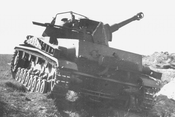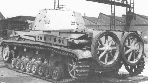 první verze prototypu Heuschrecke IVb během zkoušek, mechanismus sundávání věže měl být podle plánu poháněn motorem vozu, což se však ukázalo v podstatě neproveditelné, zdroj: Flickr.com se souhlasem publikujícího uživatele, upraveno