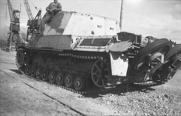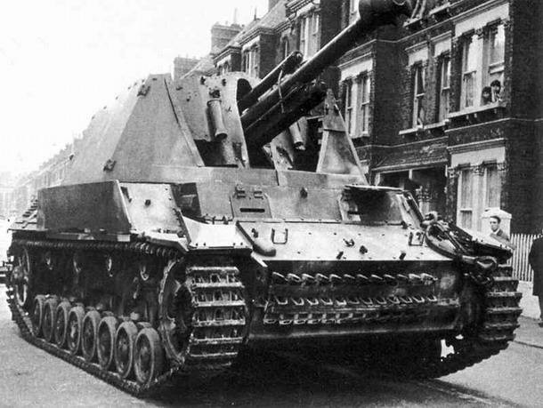 prototyp samohybného děla firmy Alkett byl ukořistěn spojenci a odvezen do Anglie, kde je dnes pravděpodobně součástí soukromé sbírky pana Kevina Wheatcrofta, zdroj: Flickr.com, Public domain, upraveno