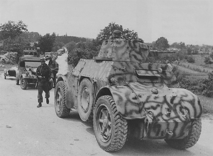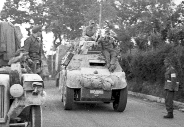 Panzerspähwagen AB41 201(i) podle všeho ve službách Luftwaffe, zdroj: Bundesarchiv Bild 101I-304-0608-21A, Wikimedia, Creative commons, upraveno