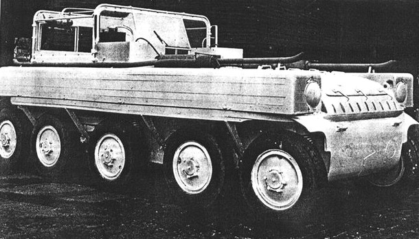 Záď prototypu firmy Magirus, všimněte si otvoru pro montáž lodního šroubu mezi tažnými háky, zdroj: leadwarrior.com, upraveno