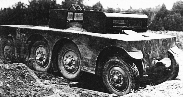 Prototyp ZRW firmy Büssing-NAG, namísto kabiny a věže je instalován jen rám s čelním sklem, zdroj: Aviarmor.net, upraveno