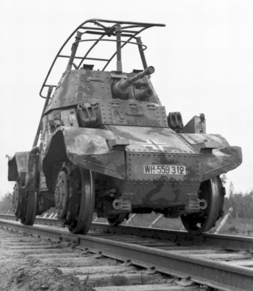 Celkem 43 strojů Panhard bylo přestavěno na průzkumné železniční vozy. Tyto stroje dostaly ocelová kola pro jízdu po železnici a postupovaly před nákladními vlaky aby jednak prozkoumaly terén před nimi a zároveň jim poskytly palebnou ochranu pro případ přepadení. Jelikož byly tyto stroje určeny k přesunům na dlouhé vzdálenosti, byly opatřeny silnými rámovými anténami pro lepší rádiové spojení. Rámové antény ale v německé armádě dostávaly i některé klasické Panhardy.