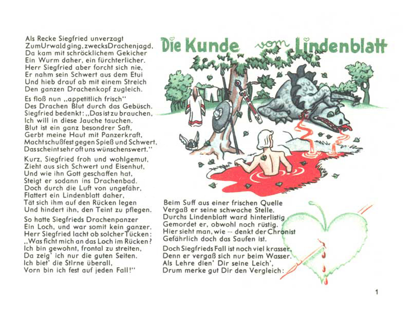 Poselství této strany manuálu by se dalo shrnout do věty „Pozor na lipový list!“. Rytíř Siegfried, hrdina z knihy Píseň o Nibelunzích, zabil draka a pak se vykoupal v jeho krvi. Tato koupel proměnila jeho kůži v pevné „brnění“ a on se stal nezranitelným. Bohužel však během koupele spadl z nedaleké lípy list a přilepil se Siegfriedovi na záda. Kůže pod listem tak nepřišla do styku s dračí krví a zůstala zranitelná (tedy něco na způsob Achillovy paty)… a Siegfried na to později doplatil. Symbol lipového listu proto v dalších částech manuálu označuje zranitelnou zónu okolo tanku.