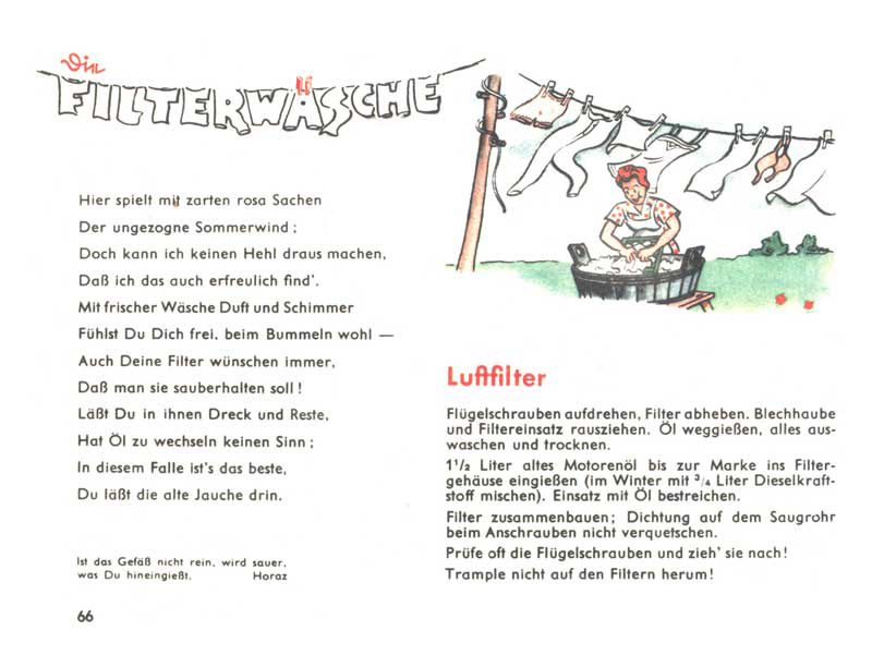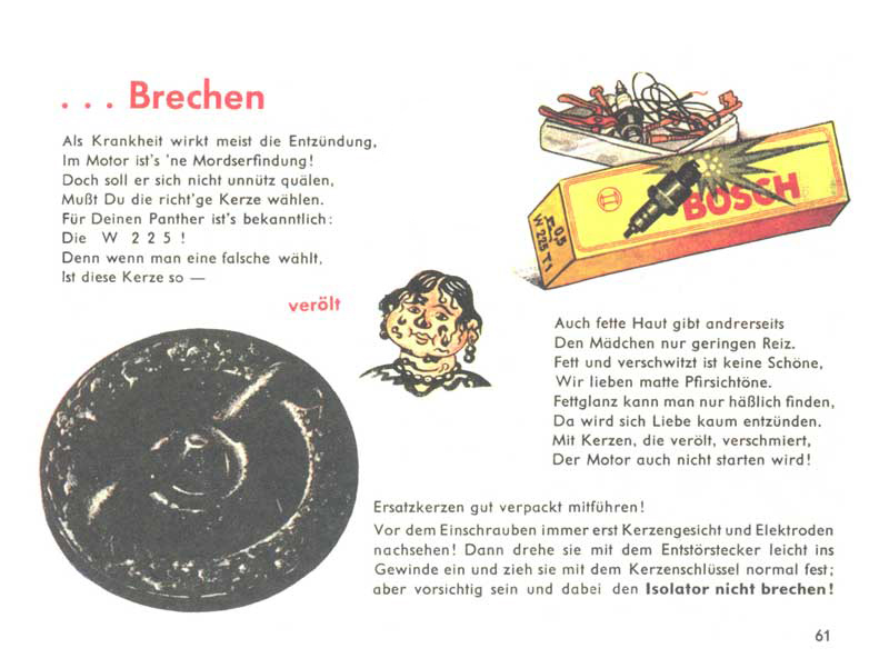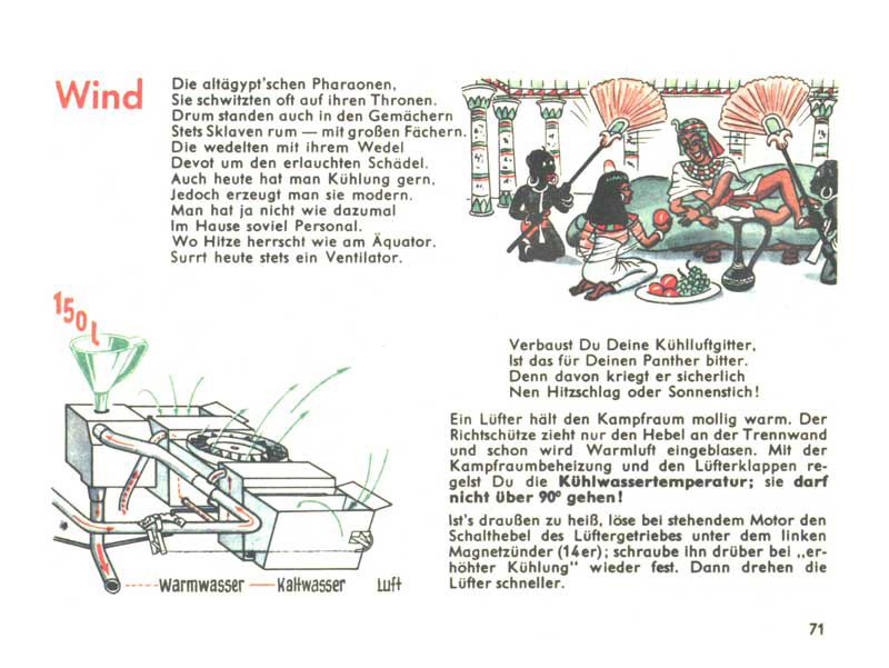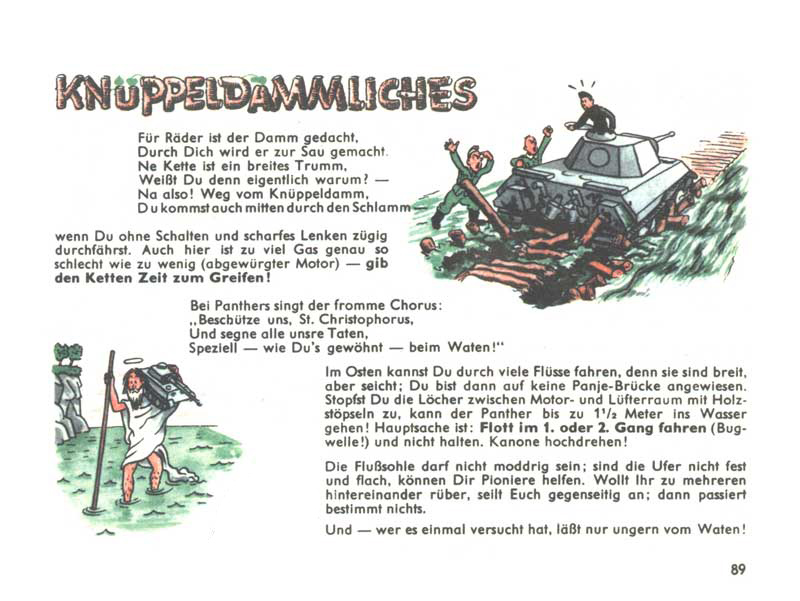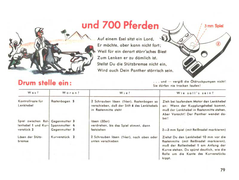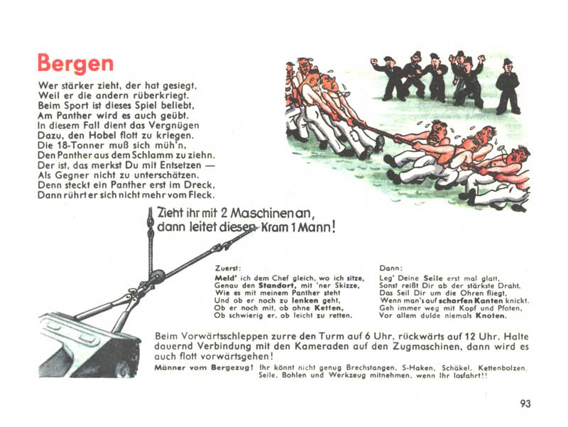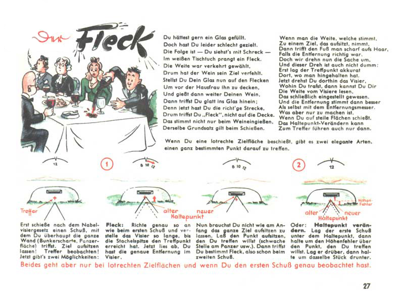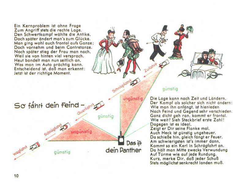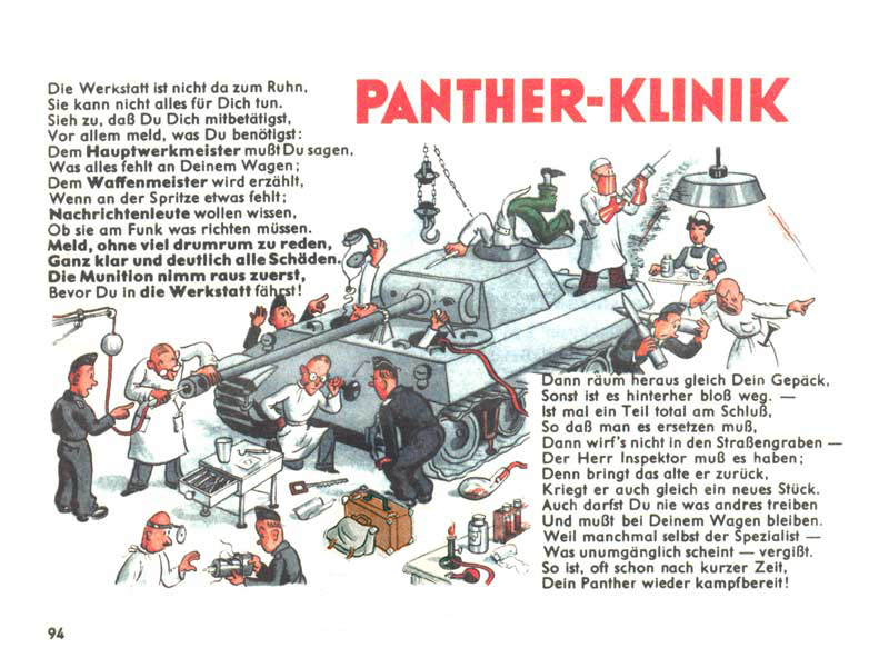 Když se řekne manuál D655/27, chytnou se možná jen ti nejskalnější ze skalních fanoušků, ale stačí říct Pantherfibel, a zorientuje se snad každý, kdo se o tanky jen trošku zajímá. Řeč je samozřejmě o ilustrovaném a veršovaném manuálu pro posádky tanků Panther. Slovo Fibel znamená německy slabikář, což je v tomto případě opravdu trefné, neboť manuál podával informace a návody velmi zábavnou a polopatickou cestou s využitím jednoduchých příkladů a vtipných obrázků. Smyslem samozřejmě bylo motivovat vojáky k tomu, aby si manuál s chutí přečetli a něco si z něj i zapamatovali.