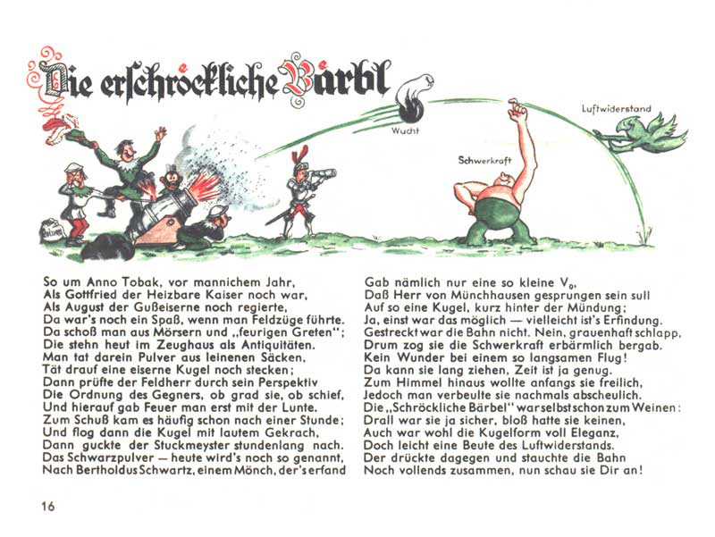 Za starých časů, kdy vládlo lité olovo a střílelo se z moždířů, které dnes nejdete jen muzeích, tehdy létaly střely tak pomalu, že na ně Baron Prášil (německy Herr von Münchhausen) dokázal za letu nasednout. Takovou pomalou střelu si gravitace snadno stáhla k sobě dolů. A i když byly kulaté dělové koule jistě elegantní, až příliš snadno prohrávaly souboj s odporem vzduchu.
