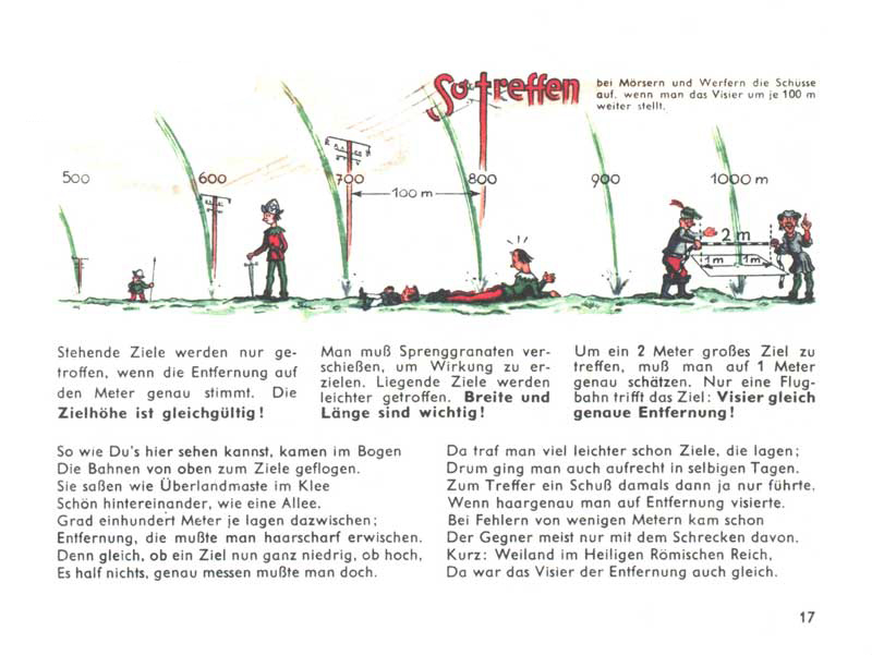 Střely ze starých moždířů létaly velkým obloukem a na cíl dopadly shora. Když střelec posunul mířidla o sto metrů, dopadla koule prostě o sto metrů dál. Nezáleželo na tom, jak vysoký byl cíl, pokud se střelec ve vzdálenosti spletl jen o pár metrů, netrefil se.