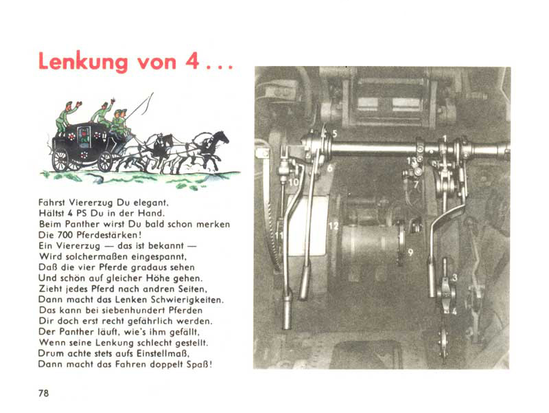 Když řídíš kočár se čtyřspřežím, ovládáš sílu čtyř koní. Tank Panther však má sílu 700 koní. Pokud si koně ve čtyřspřeží začnou dělat, co chtějí a tahat každý na jinou stranu, je to špatné. Když si ale kvůli špatnému řízení začne dělat co chce těch 700 koní pod kapotou Pantheru, může to být pěkně nebezpečné.
