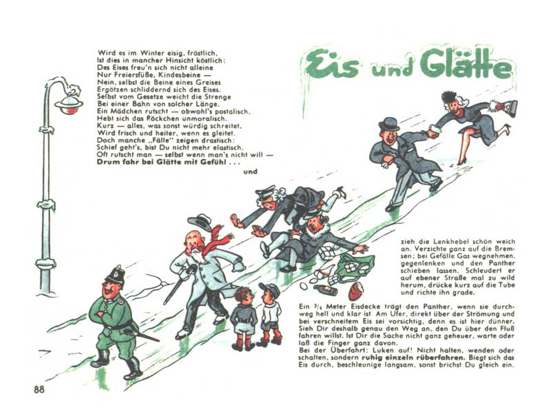 Zima a mráz mohou přinést spoustu radosti. Nejen děti, ale i dospělí se rádi sklouznou (dokonce i „rameno spravedlnosti“ se nechá unést). Horší je to, když se klouzat nechceš. Třičtvrtě metru silný led tvůj Panther bezpečně unese. Když přejíždíš zamrzlou řeku, dávej pozor hlavně u břehů, jeď pomalu a plynule, neměň rychlostní stupně, nezastavuj, nezatáčej, a hlavně nechej všechny průlezy otevřené, kdyby bylo třeba tank rychle opustit.