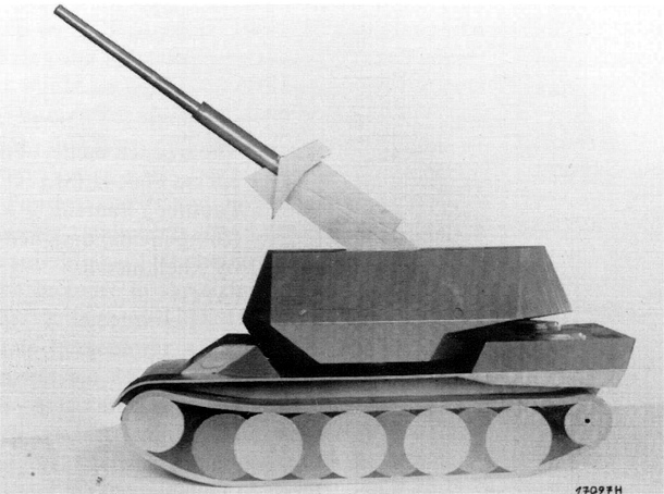tento zmenšený dřevěný model od firmy Rheinmetall ukazuje přibližnou podobu zamýšleného Flakpanzeru s kanonem Flak 41 a komponentami z tanku Panther, zdroj: Flickr.com se souhlasem publikujícího uživatele, upraveno