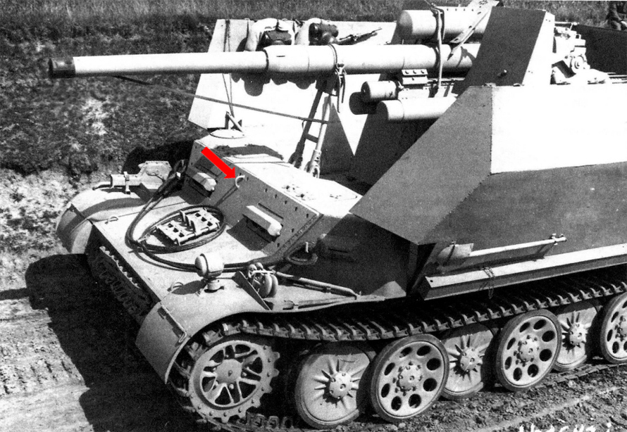 Z vnitřní strany byly na bočnicích držáky pro zavěšení ručních zbraní a tlumoků. Opětovné zvednutí zcela sklopených bočnic nebyla žádná legrace, neboť každá z nich vážila řádově stovky kilogramů. Proto zde byl zvedací mechanismus poháněný na každé straně dvěma ručními klikami (jedna klika vpředu a jedna vzadu, foto ZDE). Mimo zcela uzavřenou a zcela otevřenou polohu se daly boční stěny zafixovat také v částečně otevřené poloze (foto ZDE). Jak již bylo řečeno strop bojového prostoru zůstával otevřených i při plně zvednutých bočnicích. Před nepřízní počasí se vojáci mohli chránit přetažením nepromokavé celty. Za bojovým prostorem se nalézala motorová sekce, jejíž prakticky celý strop byl kvůli lepšímu proudění vzduchu mřížovaný. Již zmiňovaný benzínový motor Maybach HL 90 dokázal 26 tun vážícímu vozidlu udělit maximální rychlost okolo 60 km/h. 600 litrů paliva v nádrži stačilo na ujetí nějakých 300 km po silnici a cca 200 km v terénu.