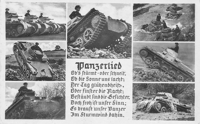 Wenn vor uns ein feindlicher Panzer erscheint, Wird Vollgas gegeben Und ran an den Feind! Was gilt denn unser Leben, Für unsres Reiches Heer, Ja Reiches Heer? Für Deutschland zu sterben Ist uns höchste Ehr.