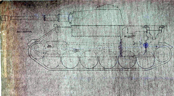 nákres rané verze vozidla Mehrzweckfahrzeug (pojezdová kola bez překryvu) s věží z tanku Panzer IV a novou velitelskou věžičkou, zdroj: dzen.ru, upraveno