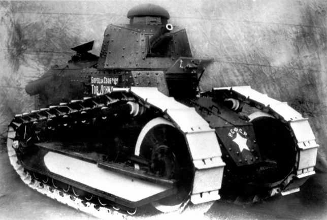 Za svůj první tank vděčí Sověti paradoxně spojenci svého nepřítele, Francii. Ta totiž, spolu s dalšími západními mocnostmi, podporovala během ruské občanské války protibolševickou opozici. Součástí této podpory byla také dodávka vojenského materiálu včetně lehkých tanků Renault FT-17. A právě tento stroj posloužil jako základ pro vývoj a výrobu prvního sovětského tanku vůbec, tanku označovaného prostě Russkij Reno.