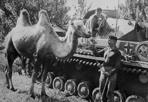 Fiasko v Tunisku! Příslušníci cirkusácké tankové roty stačili během pouhého týdne pobytu v Africe směnit s místními šest tanků a dvacítku jiných vozidel za exotická zvířata! Tady se právě uzavřel obchod: Panzer IV za 10 velbloudů, radost ve tvářích vojáků je vidět na první pohled, zdroj: Flickr.com se souhlasem publikujícího uživatele, upraveno