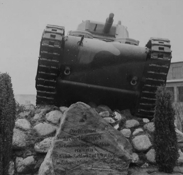 Minimálně jeden exemplář Grosstrakoru II byl rovněž použit pro stavbu pomníku před kasárnami a to zřejmě opět u pátého Panzer Regimentu. Na fotografiích tohoto pomníku je vidět zvláštní kombinace zbraní v hlavní bojové věži. Zdá se, že jsou zde vedle sebe instalovány kanony ráže 37 mm a 75 mm. Taková kombinace zbraní (mimochodem byla použita později také u tanku Neubaufahrzeug) by jistě dávala smysl, protože by v sobě spojovala možnost protitankového boje (37mm kanon) s možností podpory pěchoty (75mm kanon). Na základě studia fotografií si však dovolím vyslovit domněnku, že se i v tomto případě jedná o atrapy instalované do věže tanku-pomníku namísto opravdových zbraní. Odkud ale vzešla podoba této atrapy a vůbec její myšlenka? Teoreticky je možné, že do Grosstraktoru II byly v rámci jeho postupných úprav skutečně experimentálně instalovány dva zmíněné spřažené kanony.